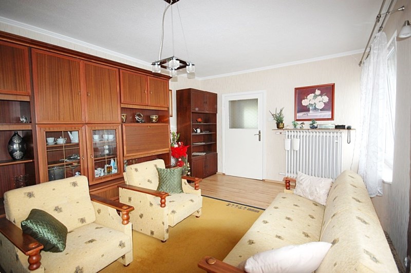 1.Salon-19,55 m2 podłoga panele, ściany gipsowane+tapeta, dwa okna pcv