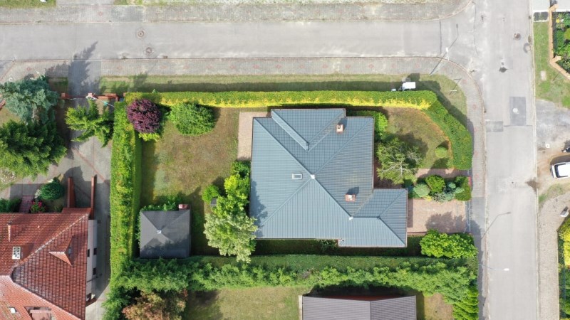 Działka o powierzchni 785 m² jest w pełni ogrodzona, z zaaranżowanym ogrodem i miejscem do rekreacji, do spładzania wspólnego czasu. Dom ze względu na usytuowanie na działce i jej roślinność jest bardzo prywatny.