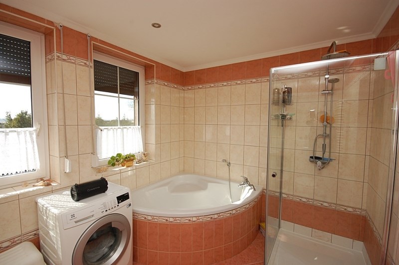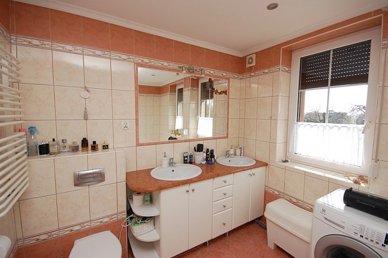 7.Łazienka-8,90m2 całość ścian i podłogi pokryte glazurą i terakotą,narożnikowa wanna,kabina prysznicowa,dwustanowiskowe umywalki z szafkami łazienkowymi,duże lustro,dwa okna pcv
