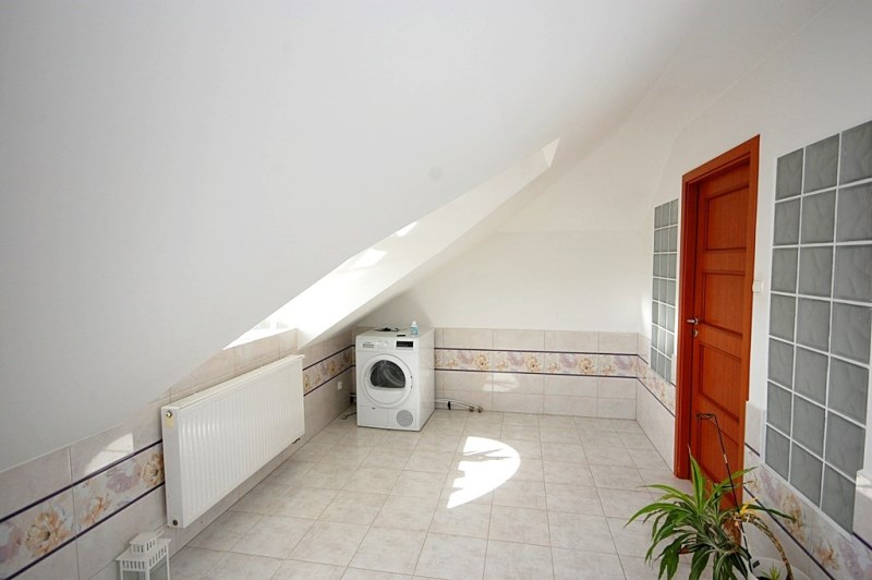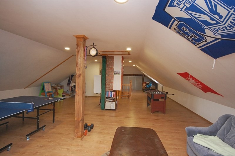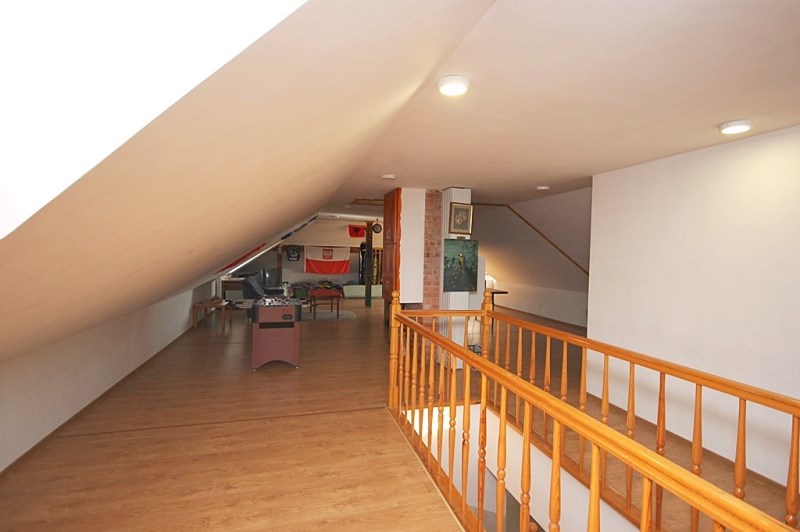 2.Pomieszczenie poddaszowe-rekreacyjne całość w panelach,doświetlenie oknami połaciowymi,zabudowane szafami wnękowymi/w pomieszczeniu znajduje się piec gazowy-dwufunkcyjny/