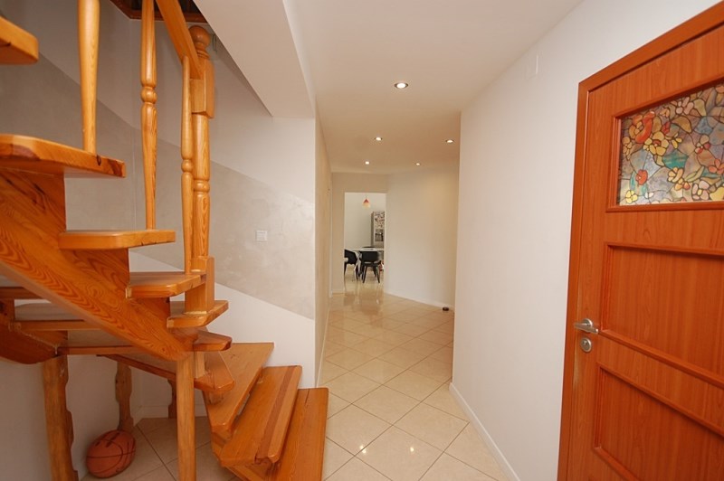 8.Holl,przedpokój-16,30m2 podłoga terakota,ściany gipsowane-malowane,ażurowe drewniane schody prowadzące na poddasze