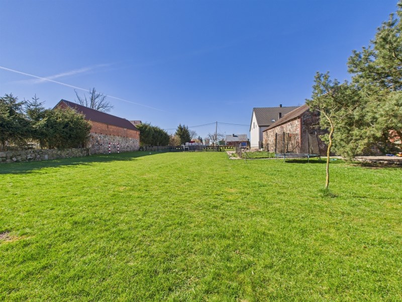 Sprzedawana nieruchomość składa się z 3 działek (numery geodezyjne: 141; 142/1 ; 142/2 ) o łącznej powierzchni ponad 1,2 ha. Na jednej z nich znajduje się następująca zabudowa: