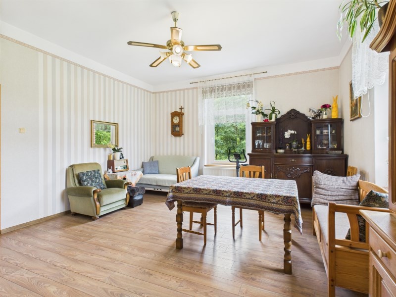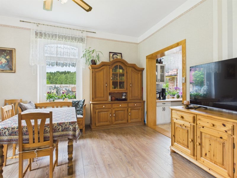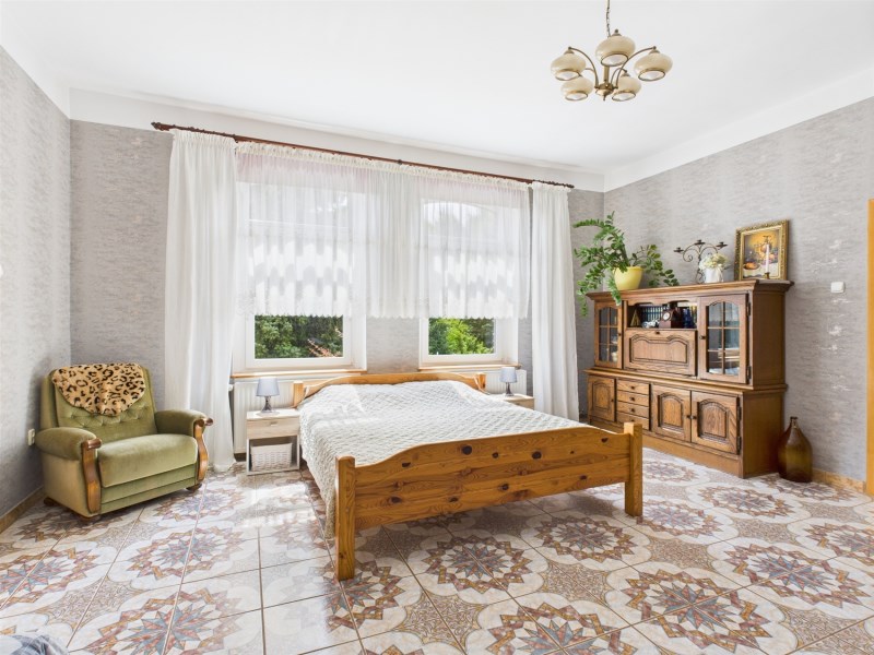Dom jednorodzinny wolnostojący o powierzchni użytkowej 145,98 m², solidnie zbudowany i modernizowany, gotowy do zamieszkania.