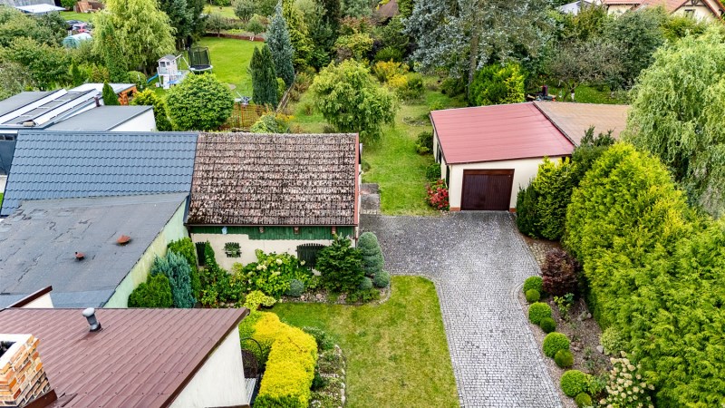 Dom został wybudowany metodą tradycyjną. Dach pokryto blachodachówką, co zapewnia trwałość oraz estetyczny wygląd. Nieruchomość jest zadbana, utrzymana w bardzo dobrym stanie technicznym – gotowa do zamieszkania bez konieczności większych nakładów.