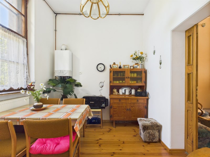 Ogrzewanie: rozprowadzona instalacja grzewcza na cały dom z zamontowanymi grzejnikami , ale na chwilę obecną brak podłączonego źródła ciepła. Budynek wybudowany metodą tradycyjną, murowany, dach konstrukcji drewnianej kryty dachówką karpiówką. Stolarka okienna drewniana - do renowacji.