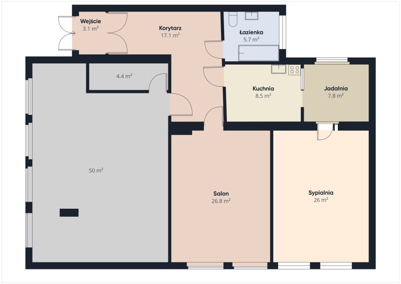 - Salon o pow. 26,8 m2