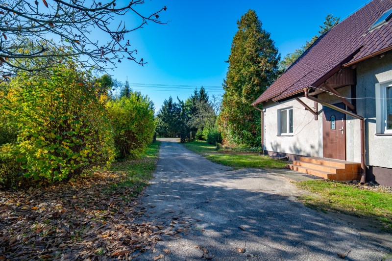 Przed domem znajduje się wiata wypoczynkowa z utwardzonym placem z kostki betonowej – idealne miejsce do relaksu.