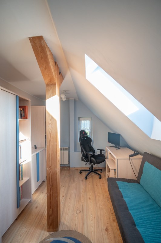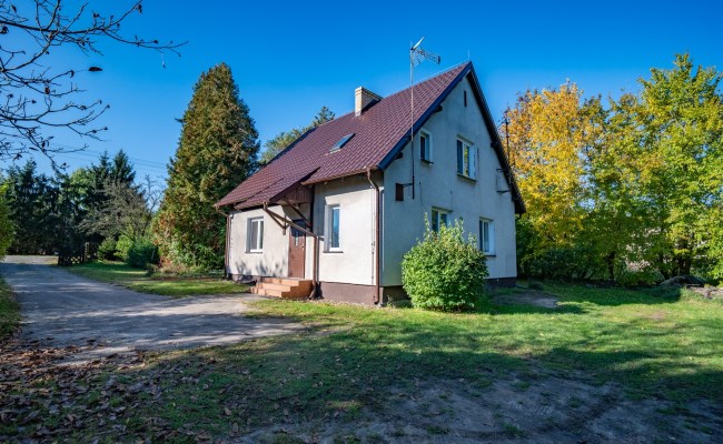 Budynek wolnostojący, parterowy z użytkowym poddaszem oraz piwnicą o powierzchni mieszkalnej 106,1 m².