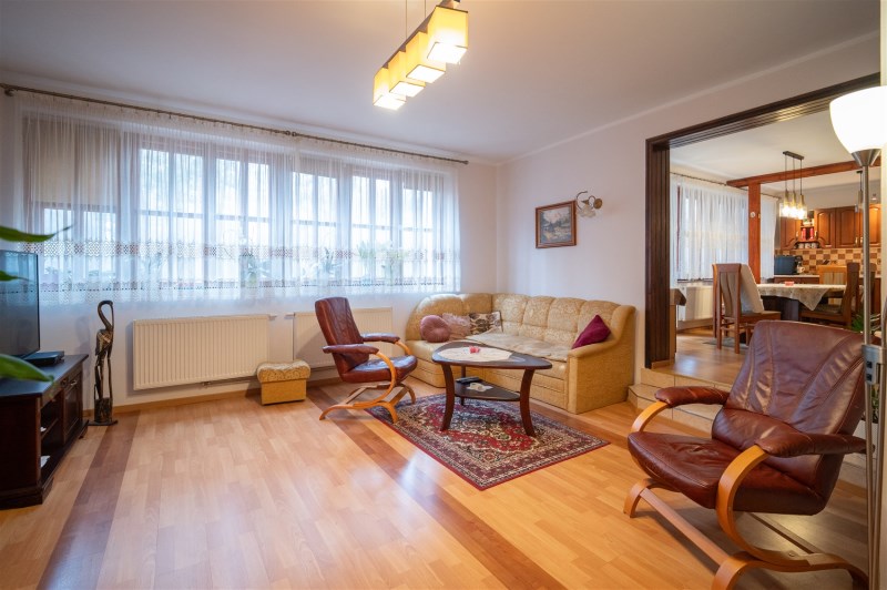 Nieruchomość o pow. użytkowej 182,1m2 wybudowana metodą tradycyjną (murowana z betonu komórkowego), dach konstrukcji drewnianej kryty dachówką cemantową. Stolarka okienna drewniana. Na podłodze panele oraz terakota