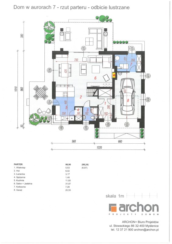 o pow. użytkowej 130,5 m2, 4 pokoje, garaż w bryle na działce 1061 m2