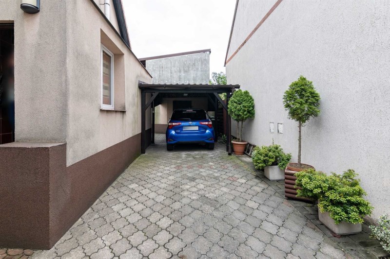 Dodatkowo na terenie posesji znajduje się budynek gospodarczy oraz wiata. Podjazd wykończony polbrukiem. Przed budynkiem znajdują się 2 miejsca postojowe dla mieszkańców.