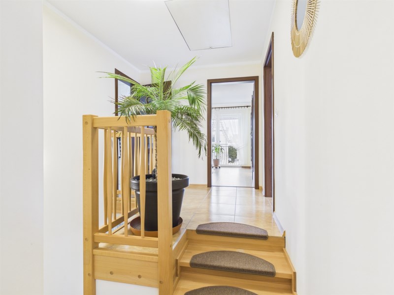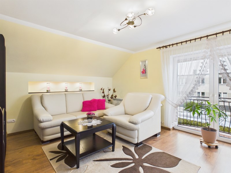 Ściany gipsowane/malowane, na podłodze panele oraz terakota. Stolarka okienna PCV