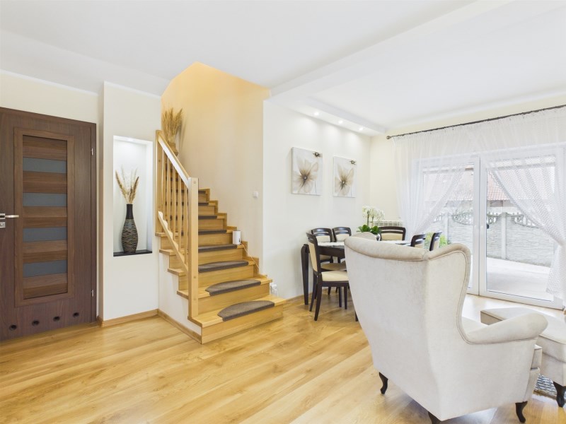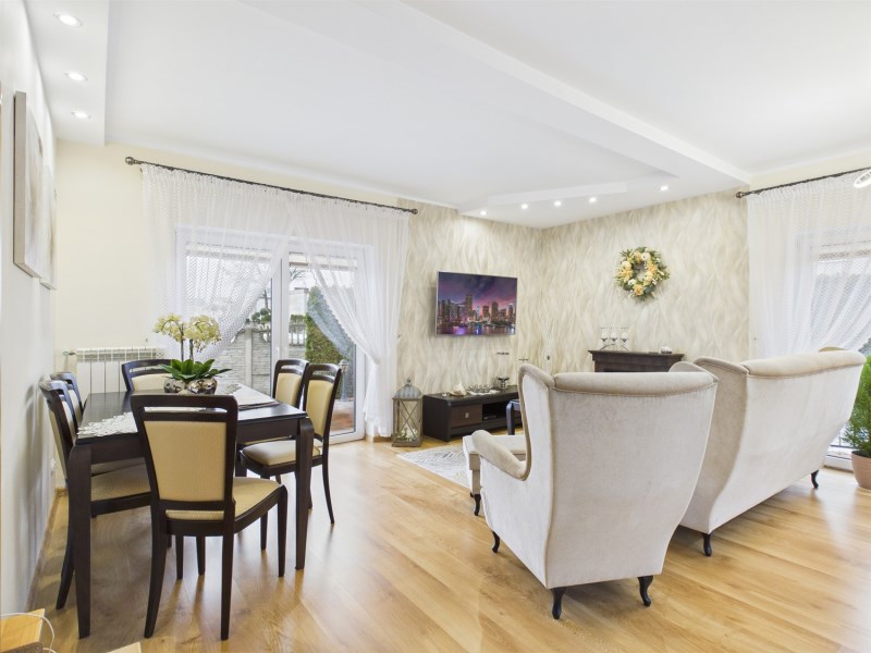 - słoneczny salon o pow. 25,21m2 z wyjściem na taras