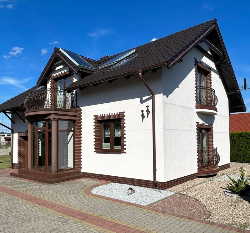 Dom wolnostojący z poddaszem użytkowym wybudowany metodą tradycyjną, murowany z suporeksu, ocieplony styropianem. Dach konstrukcji drewnianej kryty dachówką ceramiczną
