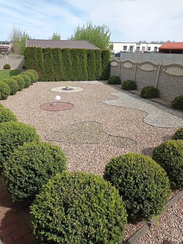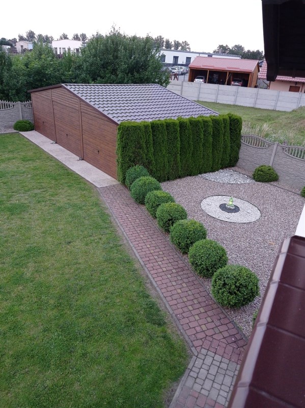 Działka o pow. 1103m2 zagospodarowana, z rekreacyjną wiatą oraz dodatkowo wolnostojącym dwustanowiskowym garażem (budynkiem gospodarczym). Cześć działki wyłożona polbrukiem, cześć z zielonymi nasadzeniami