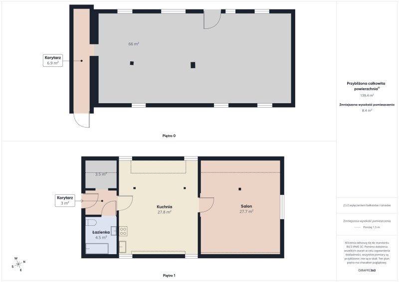 - Salon z aneksem kuchennym o pow. 27,8 m2