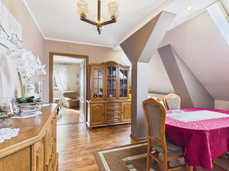 Na piętro prowadzi niezależne wejście z przedsionka, a dodatkowo obie części domu posiadają oddzielne liczniki energii elektrycznej.
