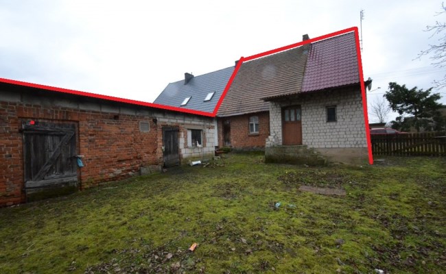 Dom w zabudowie bliźniaczej z budynkiem gospodarczym do kapitalnego remontu. Na działce znajduje się garaż.