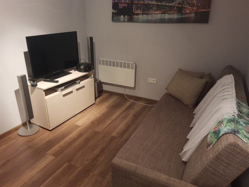 Salon z aneksem kuchennym 16m2 (w cenie zostają meble kuchenne i AGD widoczne na zdjęciach oraz meble w salonie wraz z RTV)