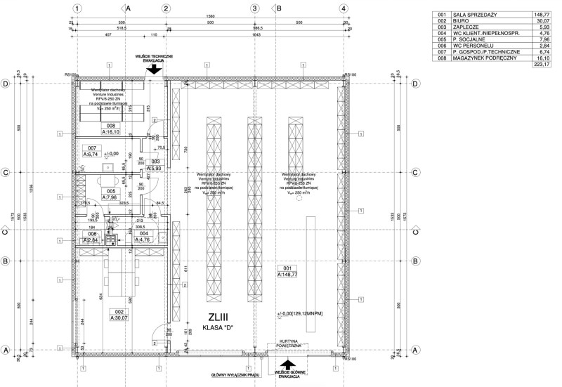 Hala magazynowa konstrukcji stalowej o pow. 223,17m2. Według projektu składająca się następujących pomieszczeń: