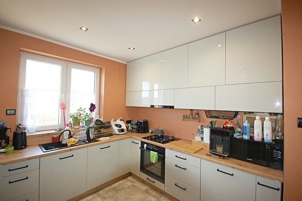 3.Kuchnia ok 13,60 m2 podłoga gres, ściany gipsowane-malowane, zabudowa meblowa kuchni pozostaje w cenie, klimatyzacja