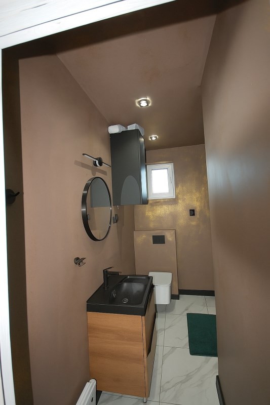 4.Łazienka ok 4,8 m2 podłoga gres, ściany gipsowane-malowane/farba hydrofobowa/, wanna,okno pcv