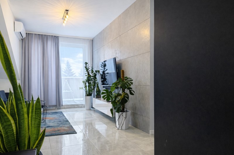 Komfort temperaturowy wzmacnia klimatyzacja w salonie.