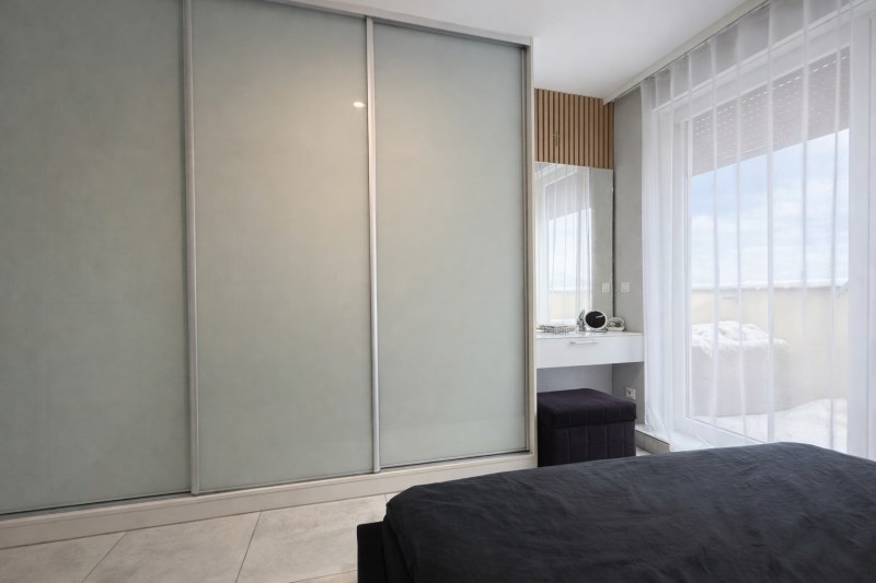 • Główna – 11,52 m², stylowa z lamelami ściennymi, dużą szafą i toaletką oraz wyjściem na balkon,