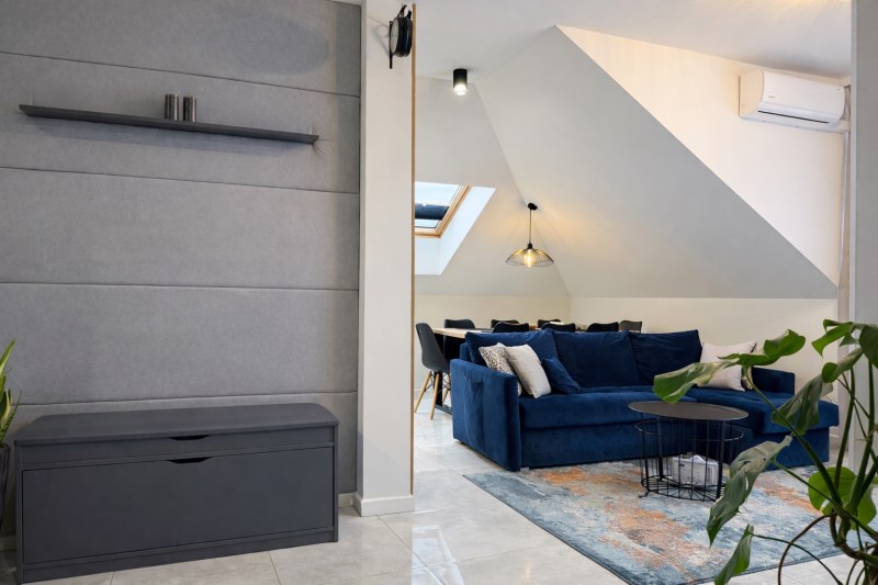 Komfort temperaturowy wzmacnia klimatyzacja w salonie.