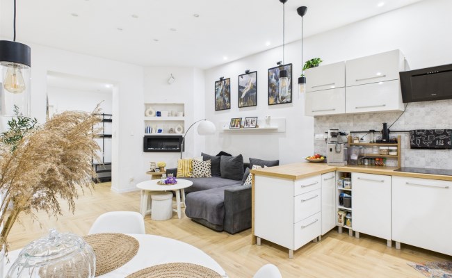 przestronnego salonu z aneksem kuchennym o pow. 26,6 m2, idealnego miejsca do wspólnego spędzania czasu,