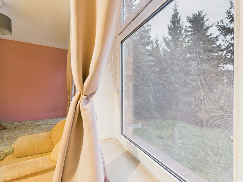 - Sypialnia o pow. 11,3 m2 – ciche, osobne pomieszczenie z przestrzenią na duże łóżko oraz szafę z widokiem na zieleń
