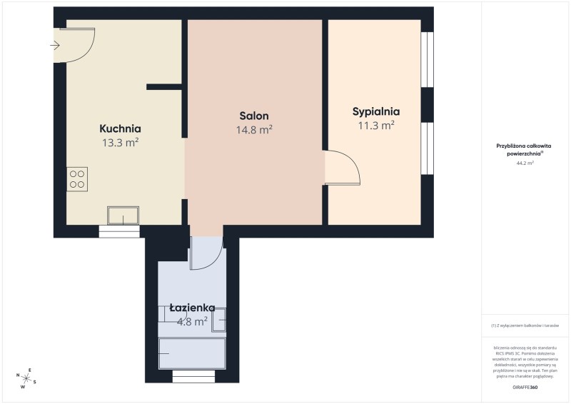- Salon o pow. 14,8 m2 - idealny jako strefa dzienna z miejscem na wypoczynek,