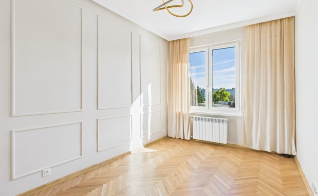 Salon o powierzchni 14 m2, parkiet drewniany cyklinowany (buk) i lakierowany, z możliwością samodzielnej aranżacji i umeblowania;