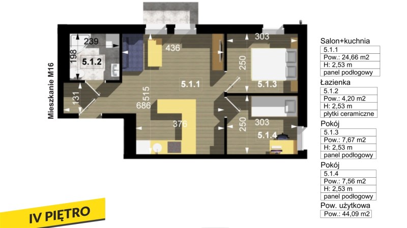 Przedmiotowy lokal ma pow. 43,55m2 i położony jest na IV piętrze. Sprzedawany jest w stanie deweloperskim. Mieszkanie gotowe jest do wykończenia przez nowego nabywcę