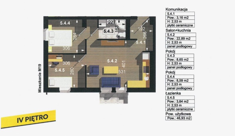 Przedmiotowy lokal ma pow. 46,19m2 i położony jest na IV piętrze. Sprzedawany jest w stanie deweloperskim. Mieszkanie gotowe jest do wykończenia przez nowego nabywcę