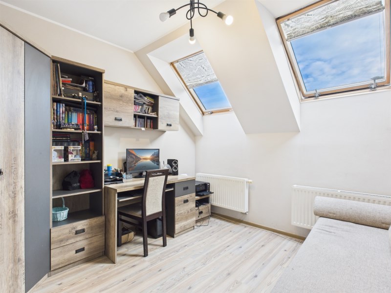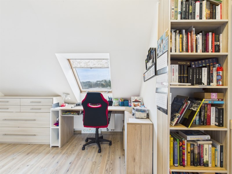 Nieruchomość stanowi dobrą propozycję zarówno dla rodziny, jak i osób poszukujących mieszkania z wyraźnie wydzieloną przestrzenią do pracy i wypoczynku.
