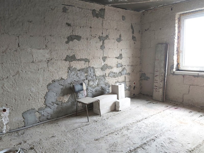 Mieszkanie w trakcie remontu. Zostały usunięte wszystkie tynki, zamontowano nowe okna pcv, poprowadzono nową instalację elektryczną, zakupiono drzwi wejściowe do montażu