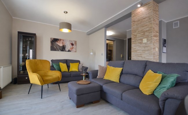 Mieszkanie zostało wykończone z dbałością o najmniejsze detale. Sąsiedztwo rzeki i spokojna okolica zapewni komfort mieszkańcom.