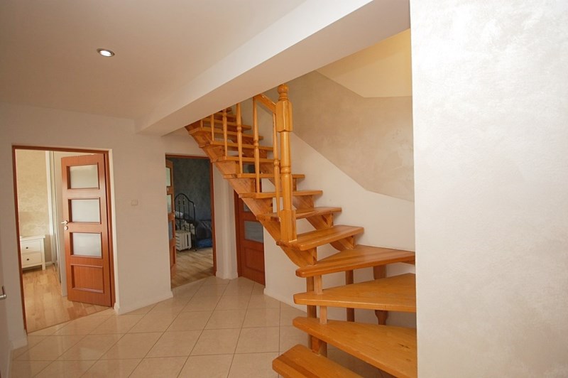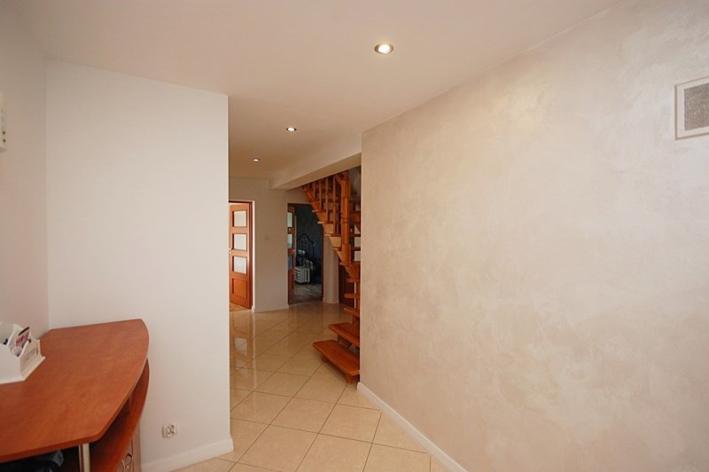 8.Holl,przedpokój-16,30m2 podłoga terakota,ściany gipsowane-malowane,ażurowe drewniane schody prowadzące na poddasze