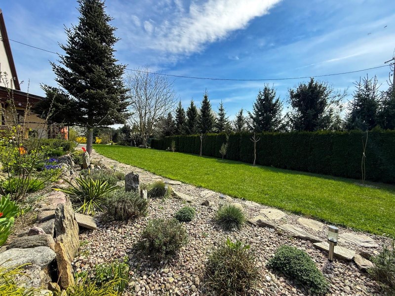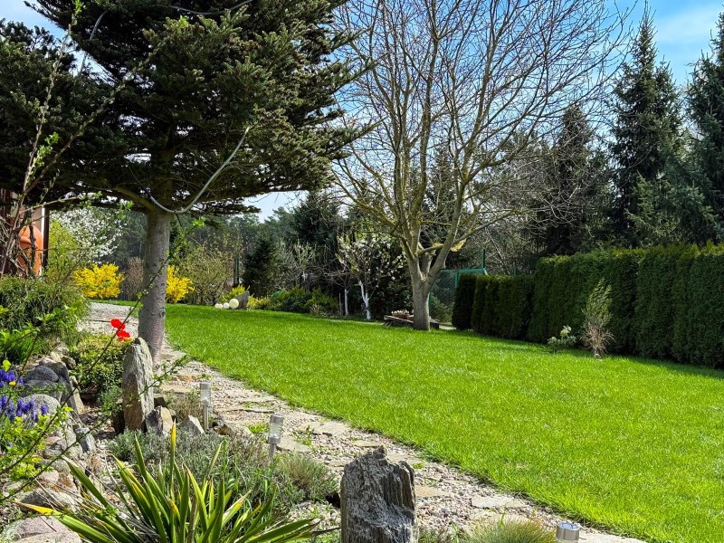 Działka została w pełni zaaranżowana – to ogromna wartość dodana dla przyszłych właścicieli. Teren ogrodzony, przemyślany i gotowy do użytkowania – bez potrzeby inwestowania w kostkę, zieleń, nasadzenia czy budowę dodatkowych zabudowań.