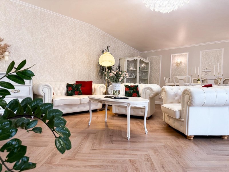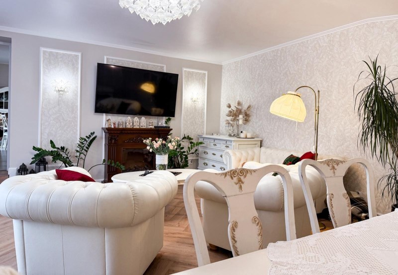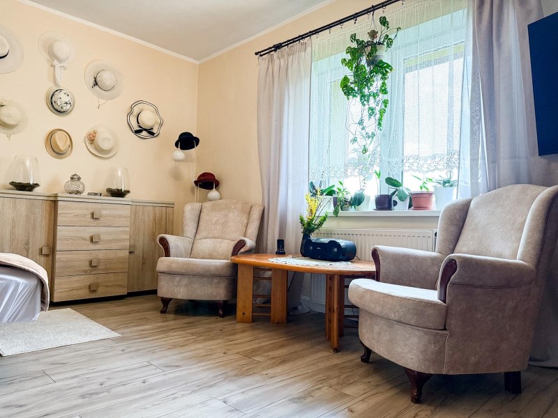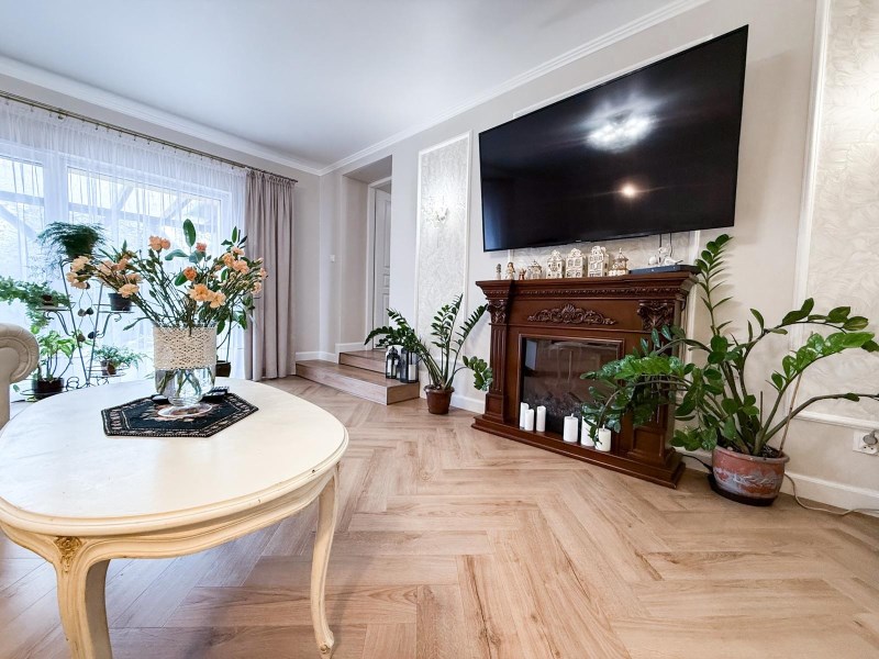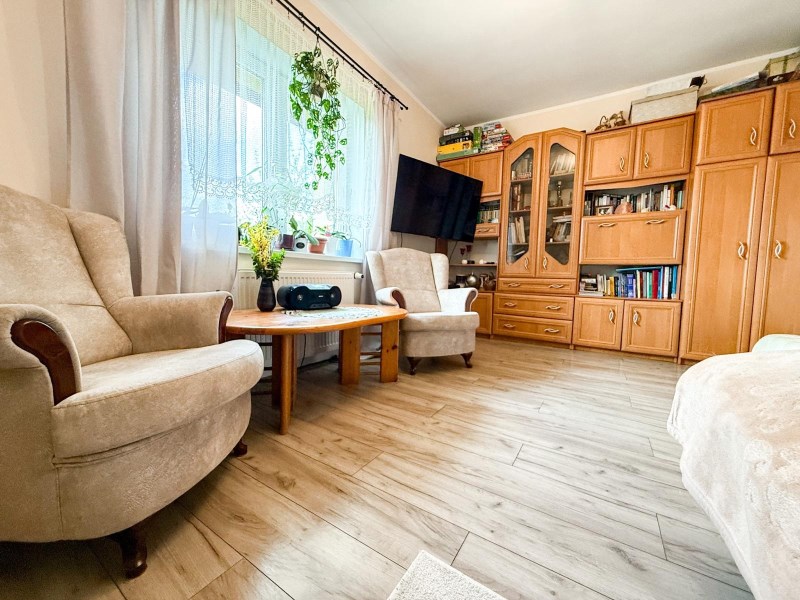 - Okna PCV, nowe wylewki, podłogi wykończone panelami i kaflami w spójnej stylistyce