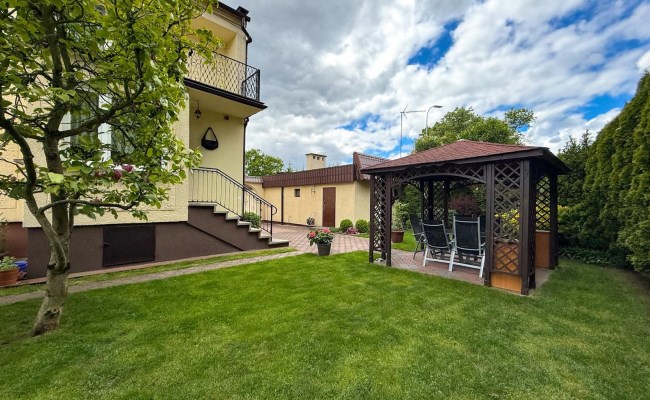 Działka: 506 m² – w pełni zagospodarowana, z pięknymi nasadzeniami, altaną i trawnikiem z rolki