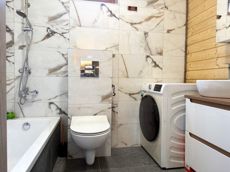 Łazienka (3,73 m²) – z wanną, toaletą i miejscem na pralkę.