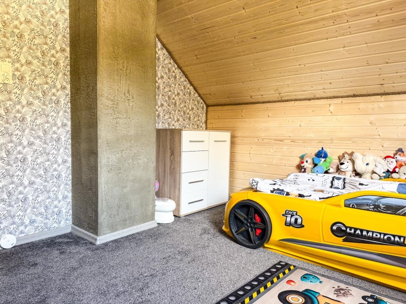 - Okna trzyszybowe, drewniane schody, podłogi z paneli, płytek i wykładziny.