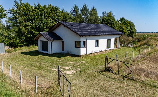 Na sprzedaż oferujemy dom jednorodzinny parterowy o powierzchni użytkowej 110,24 m² + garaż w bryle budynku 19,42 m², usytuowany na działce o powierzchni 1000 m² (własność).