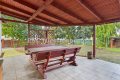 Całość ogrodzona. Na posesji duże drzewa.