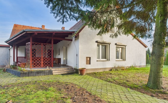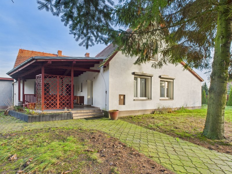 Dom jednorodzinny parterowy z poddaszem nieużytkowym i osobnym murowanym garażem.