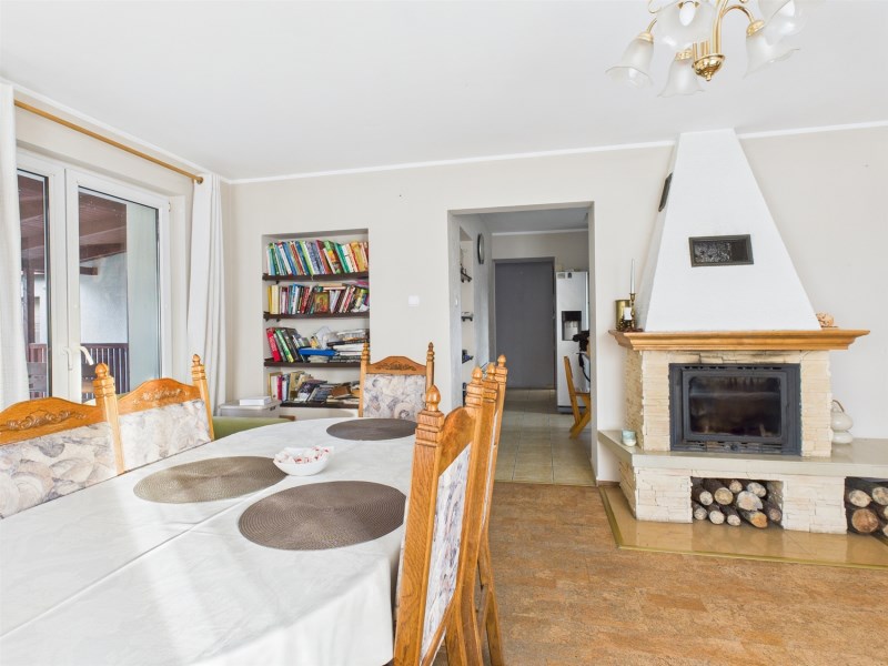 - salon z kominkiem o pow. 23 m² z wyjściem na duży zadaszony taras,
