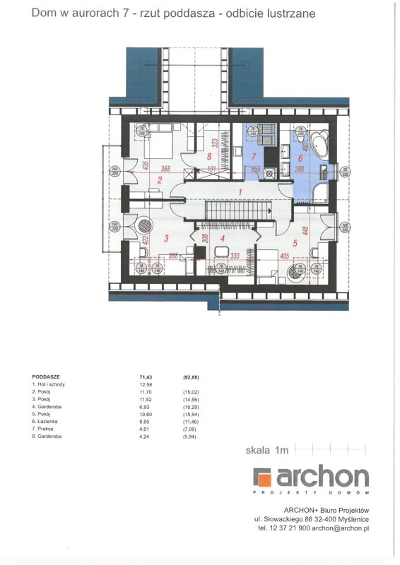 a na poddaszu użytkowym: - pokój o pow. 11,70 m2,