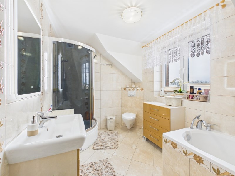 Dom wolnostojący z poddaszem użytkowym wybudowany metodą tradycyjną, murowany z suporeksu, ocieplony styropianem. Dach konstrukcji drewnianej kryty dachówką ceramiczną
